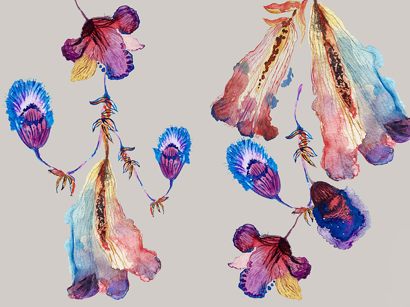 Flower Dreams Pattern Pattern, Surface, Textile, Hand Drawn: watercolor (assembled in Adobe Photoshop / bitmap)