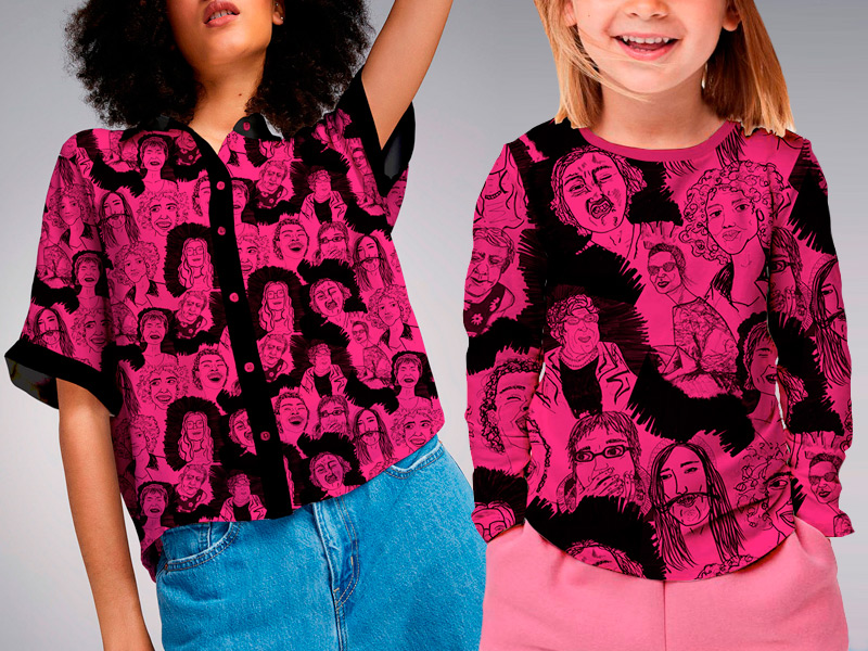 Girls Pattern Pattern, Surface, Textile, Hand Drawn: felt tip pen (assembled in Adobe Photoshop / bitmap)