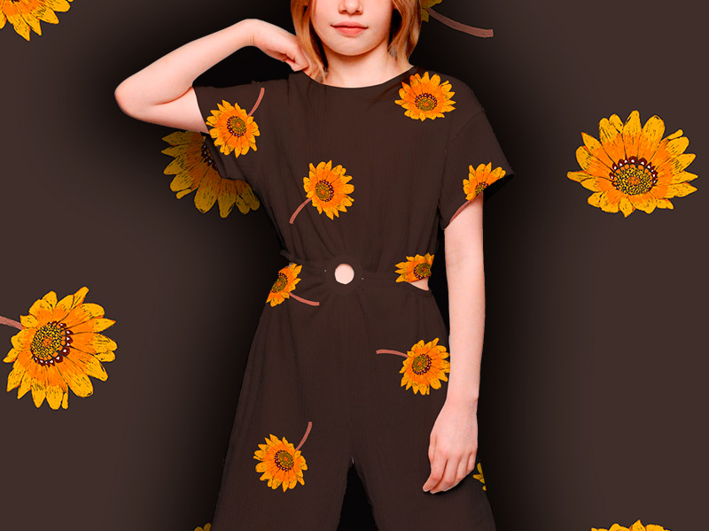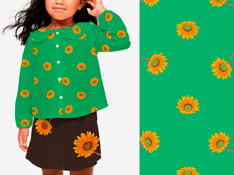 Orange Flower Pattern Pattern, Surface, Textile, Digital Illustration (Adobe Fresco + Photoshop / bitmap)