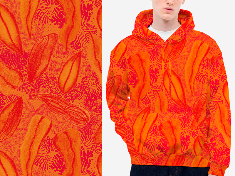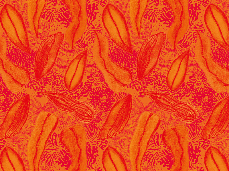 Pastel Leaves Pattern Pattern, Surface, Textile, Mixed Media: hand drawn pastels + digital illustration (Adobe Fresco and Illustrator / bitmap and vector)