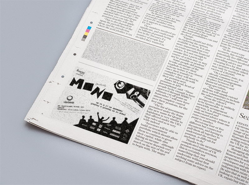 Criação e diagramação de todo material de divulgação da peça de teatro “A vida em Mono”, incluindo flyer impresso e virtual, cartaz, anúncio, estampa de camiseta, e stencil (2007).